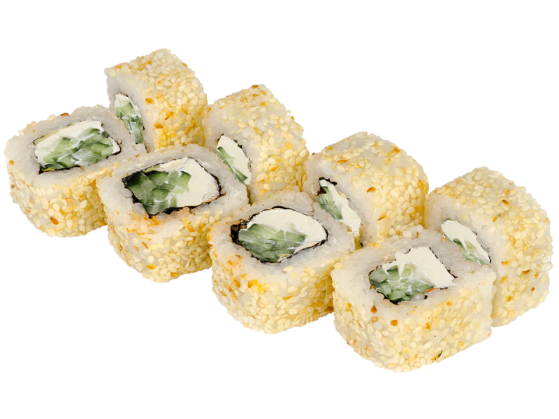 Knusprig panierte Rolle mit Garnelen, Avocado, Frischkäse, Sesam, Chili-Mayo und Teriyaki Sauce(1,4,a,b,g,l)
